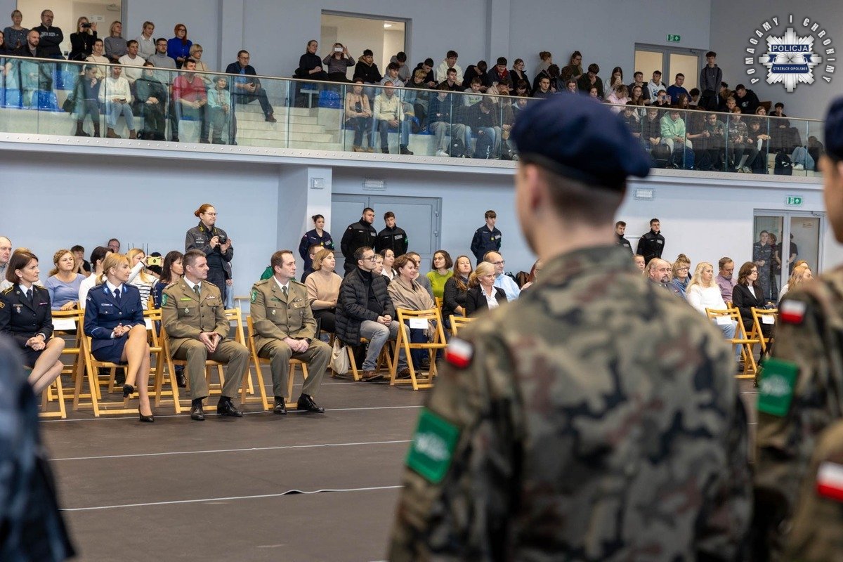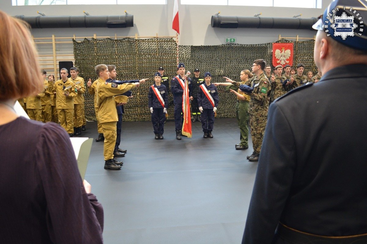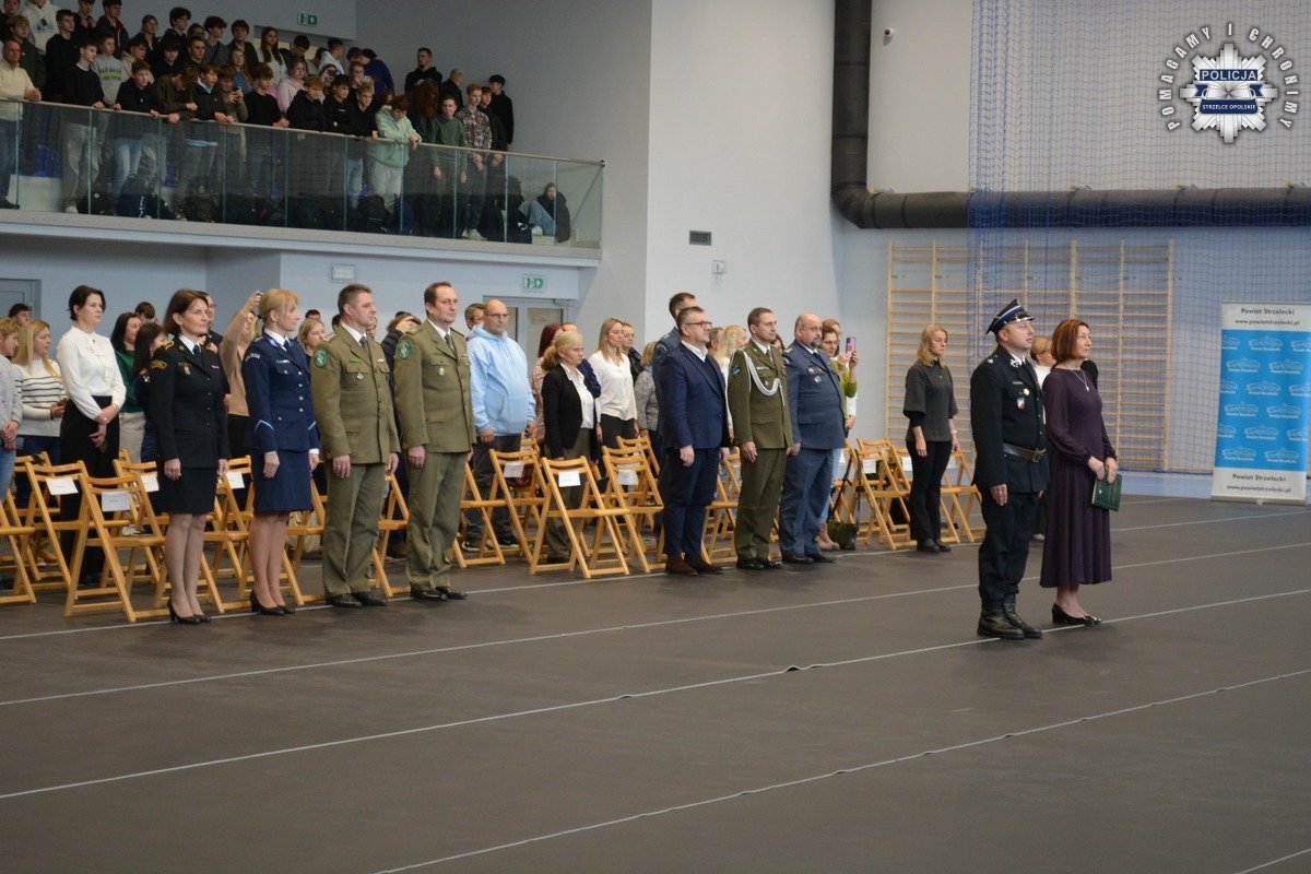 Wczoraj, w Centrum Kształcenia Zawodowego i Ustawicznego w Strzelcach Opolskich, odbyła się uroczystość ślubowania uczniów klas mundurowych. Dzięki podpisanemu porozumieniu uczniowie mają możliwość poznania specyfiki służby w Policji już na etapie nauki szkolnej. Podczas wydarzenia obecni byli m.in. Starosta Strzelecki Pan Waldemar Gaida oraz przedstawiciele służb mundurowych, którzy wspólnie wręczyli uczniom akty mianowania na pierwsze stopnie klasowe.