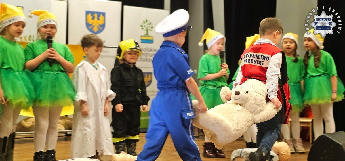 Podczas gali dzieci zaprezentowały wyjątkowe występy – scenki, piosenki oraz układy taneczne, które w przystępny, a jednocześnie wzruszający sposób nawiązywały do tematyki ratowania życia i zasad bezpieczeństwa. Najmłodsi pokazali, czego nauczyli się podczas zajęć prowadzonych przez policjantów ze Strzelec Opolskich, czyli wzywania pomocy, korzystania z numeru alarmowego 112, pozycji bocznej bezpiecznej czy podstaw resuscytacji krążeniowo-oddechowej.