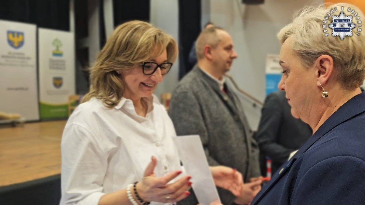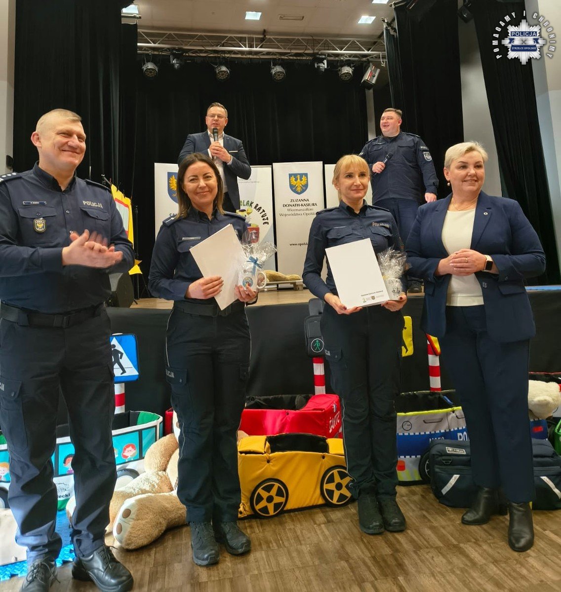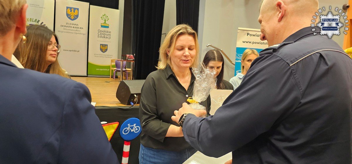 Na zakończenie gali wszystkim przedszkolakom wręczono upominki przypominające o zasadach bezpieczeństwa. Podziękowania za zaangażowanie oraz otwartość na przeprowadzenie zajęć edukacyjnych z zasad udzielania pierwszej pomocy otrzymali przedstawiciele władz samorządowych, dyrektorzy placówek oświatowych oraz koordynatorki działań edukacyjnych z Komendy Powiatowej Policji w Strzelcach Opolskich.